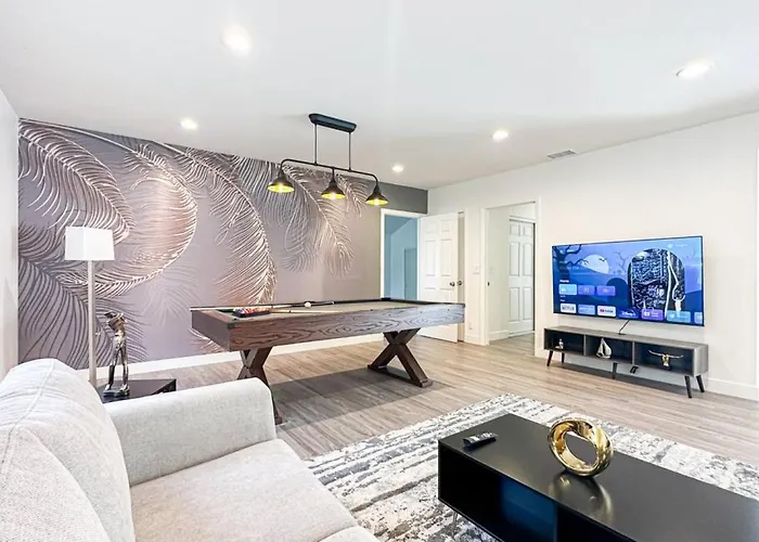 In kompletter Küche finden Sie eine Mikrowelle, einen Kühlschrank und Küchenutensilien für Selbstversorger. Das Restaurant Claim Jumper Restaurants liegt etwa 14 Minuten zu Fuß von der Villa entfernt und serviert amerikanische Gerichte. Von der Cozy 3Br Oasis For Your Next Adventure In La - Wo sind es 15 Minuten mit dem Auto zum Flughafen Hollywood Burbank. Das Gebiet ist auch beliebt für Billard.